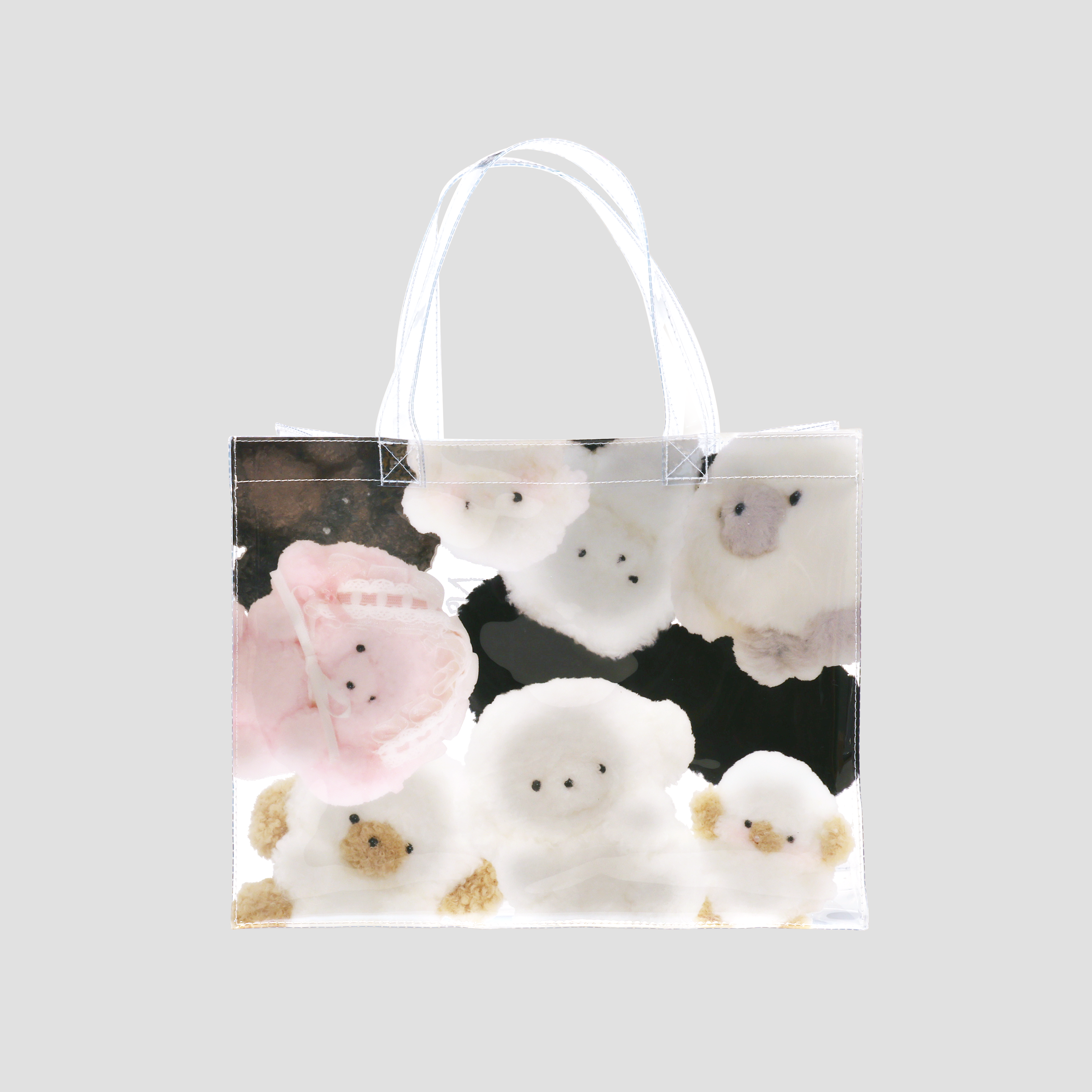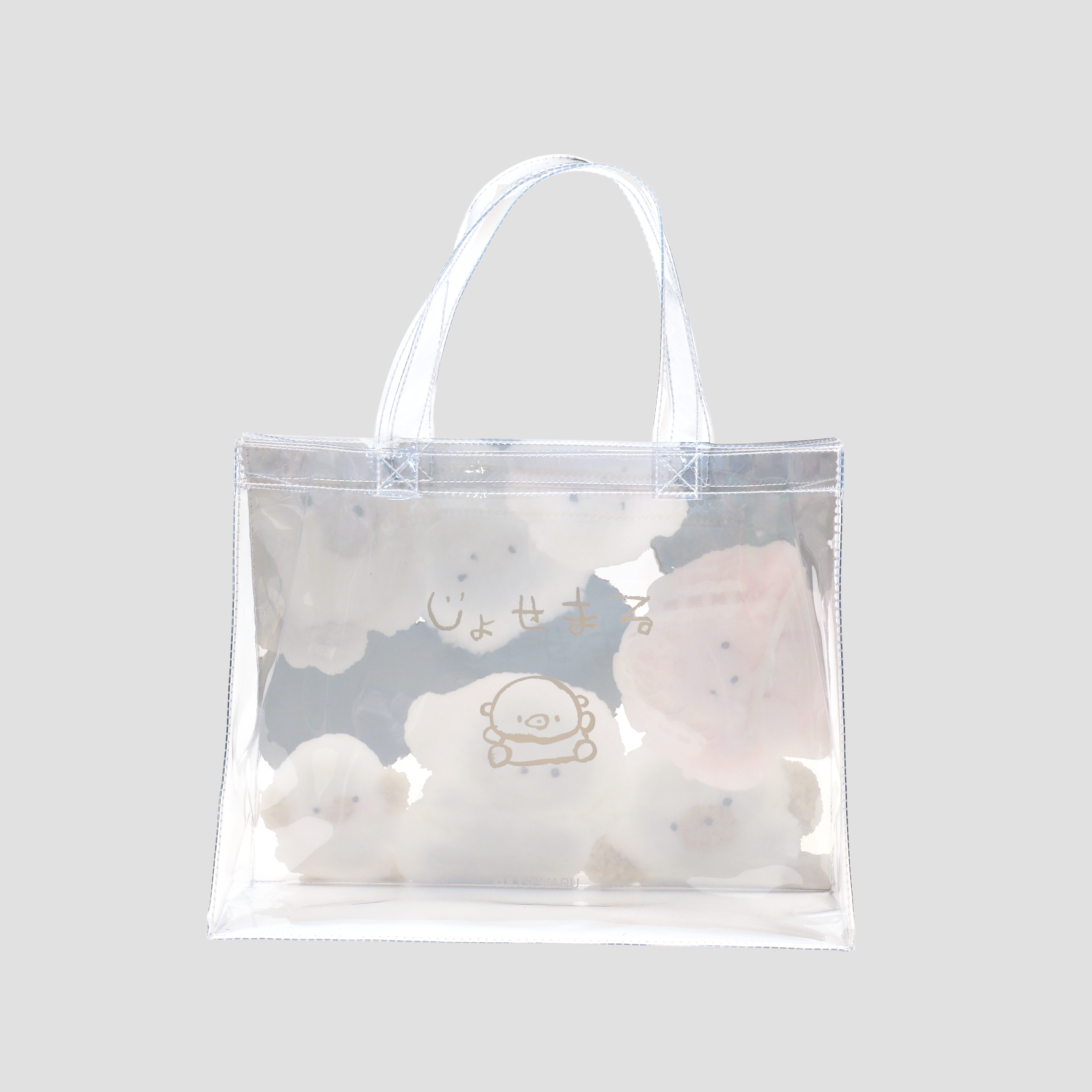 満員電車でむぎゅっと押しつぶされているじょせまるたちのクリアトート。