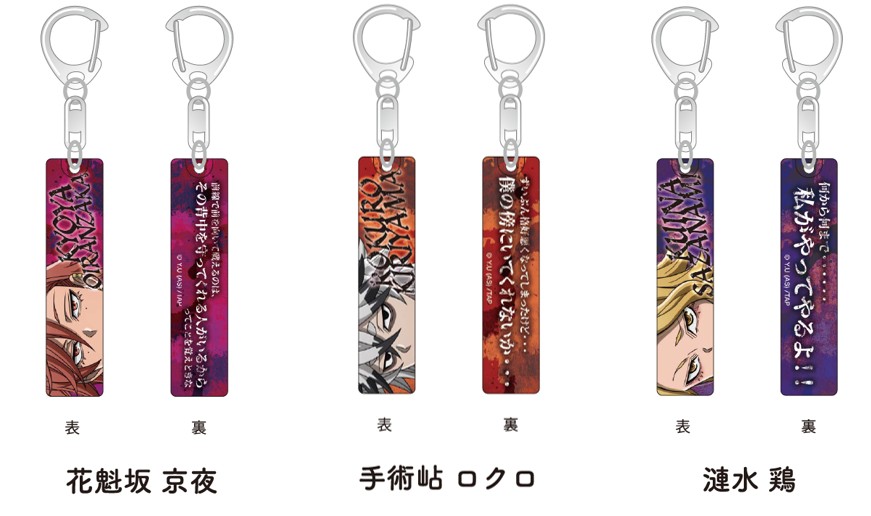 TVアニメ「桃源暗鬼」のアクリルキーホルダーです。裏面には、アニメに登場した各キャラクターのセリフも! ※一会計につきお一人様11点までとなります。※キャラクターはお選びいただけません。